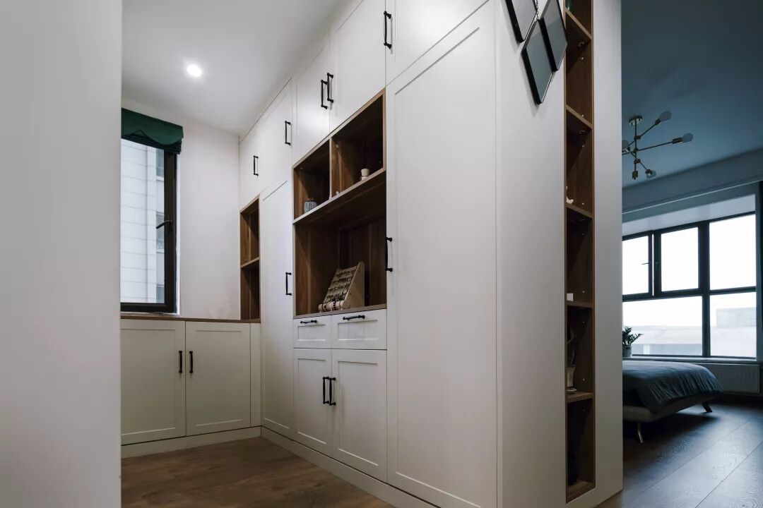 ▲衣帽间定制了大面积的衣柜空间,为主人提供了充足衣物储藏位置。